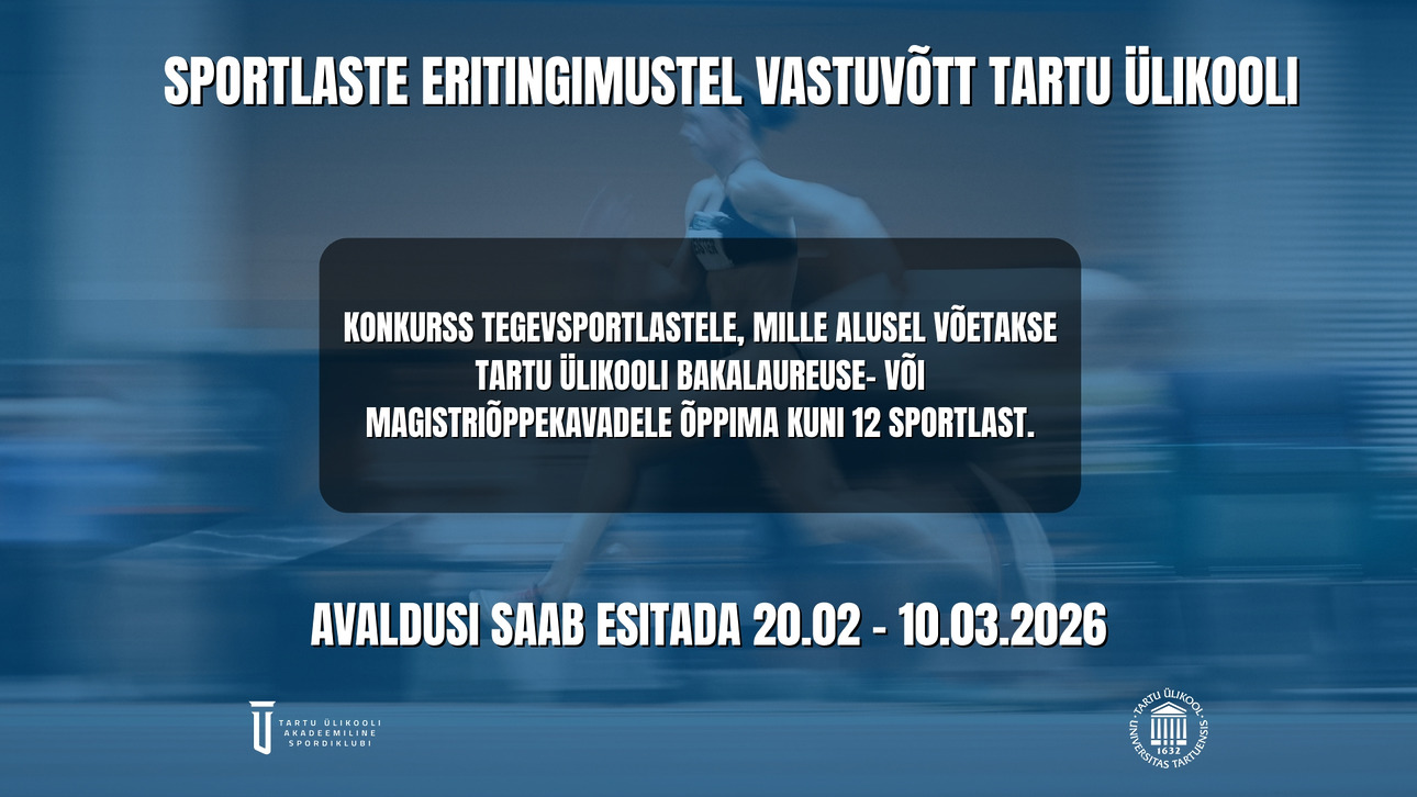 Tartu Ülikooli Akadeemiline Spordiklubi korraldab konkursi, mille alusel võetakse Tartu Ülikooli kõrghariduse esimese või teise astme õppekavade alusel õppima kuni kaksteist sportlast.
